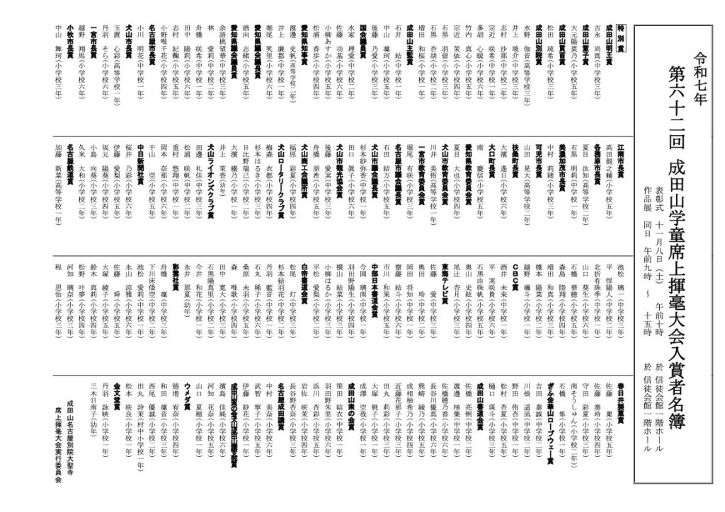 表彰式:11月8日(土)午前10時 於 信徒会館一階ホール